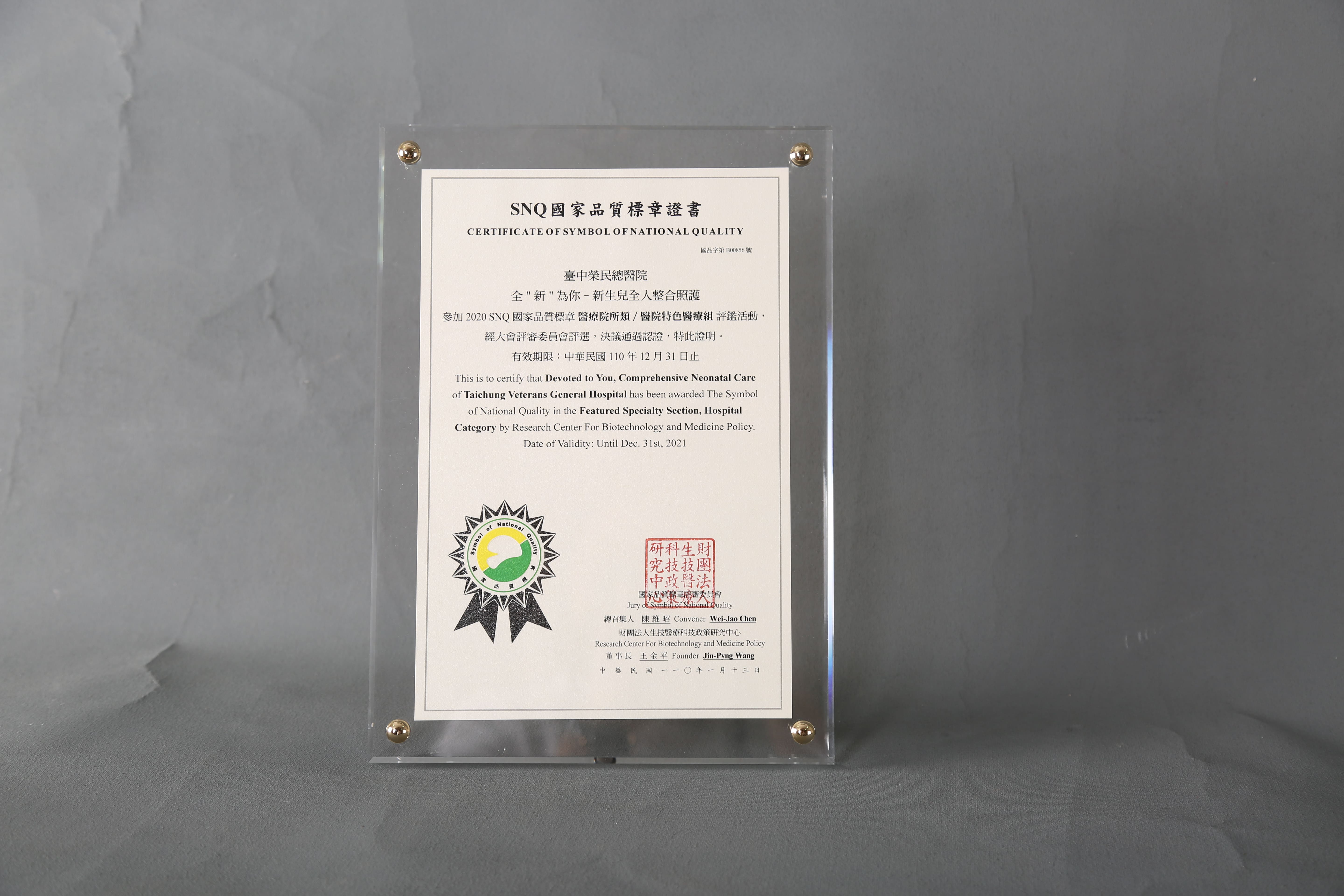 2020年國家生技醫療產業策進會-醫院特色醫療組-標章獎-全"新"為你- 新生兒全人整合照護