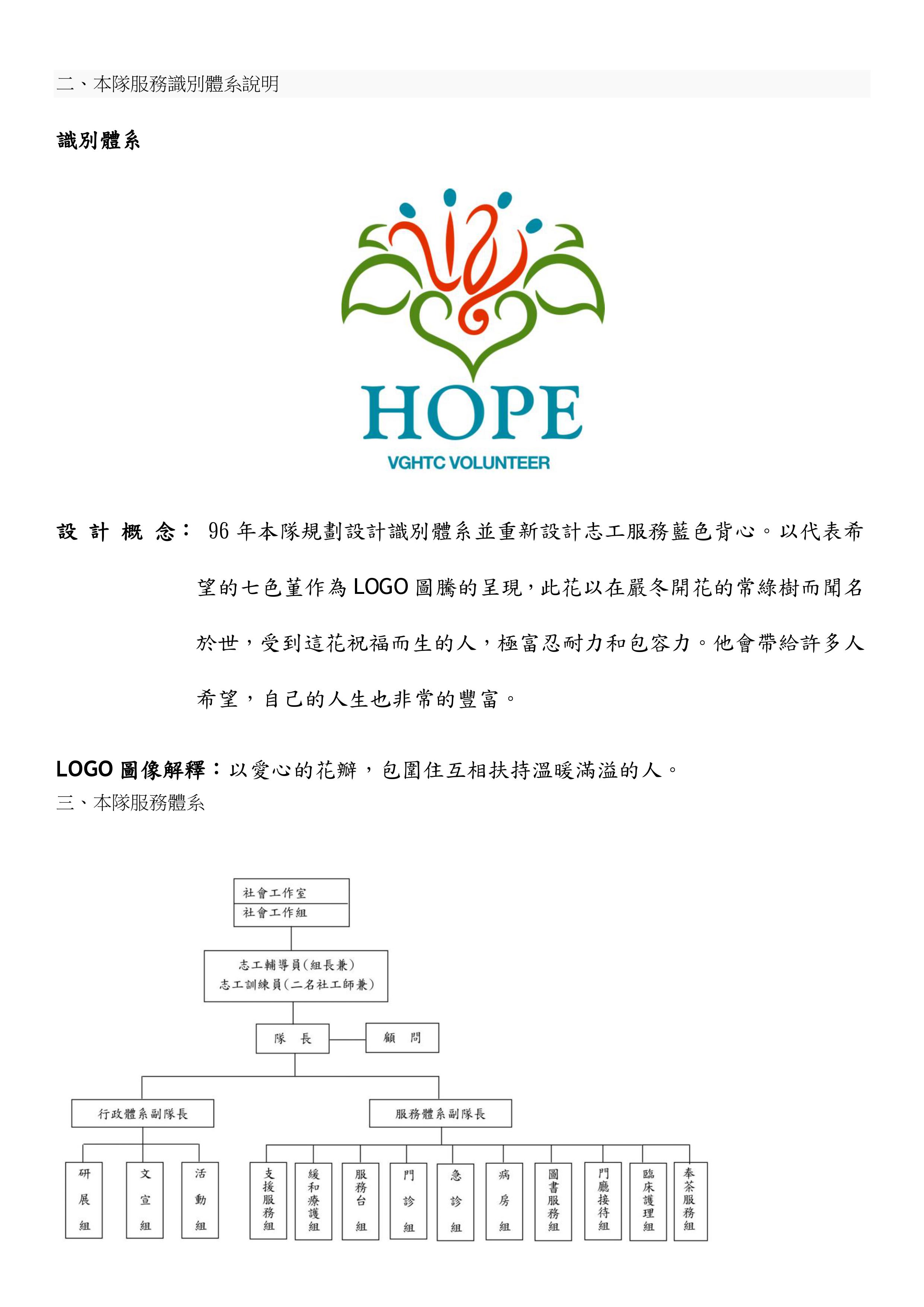 6.病 房 組:住院病患關心探訪、特殊需要的病患服務:如陪伴、寫信、臨時支援服務等。